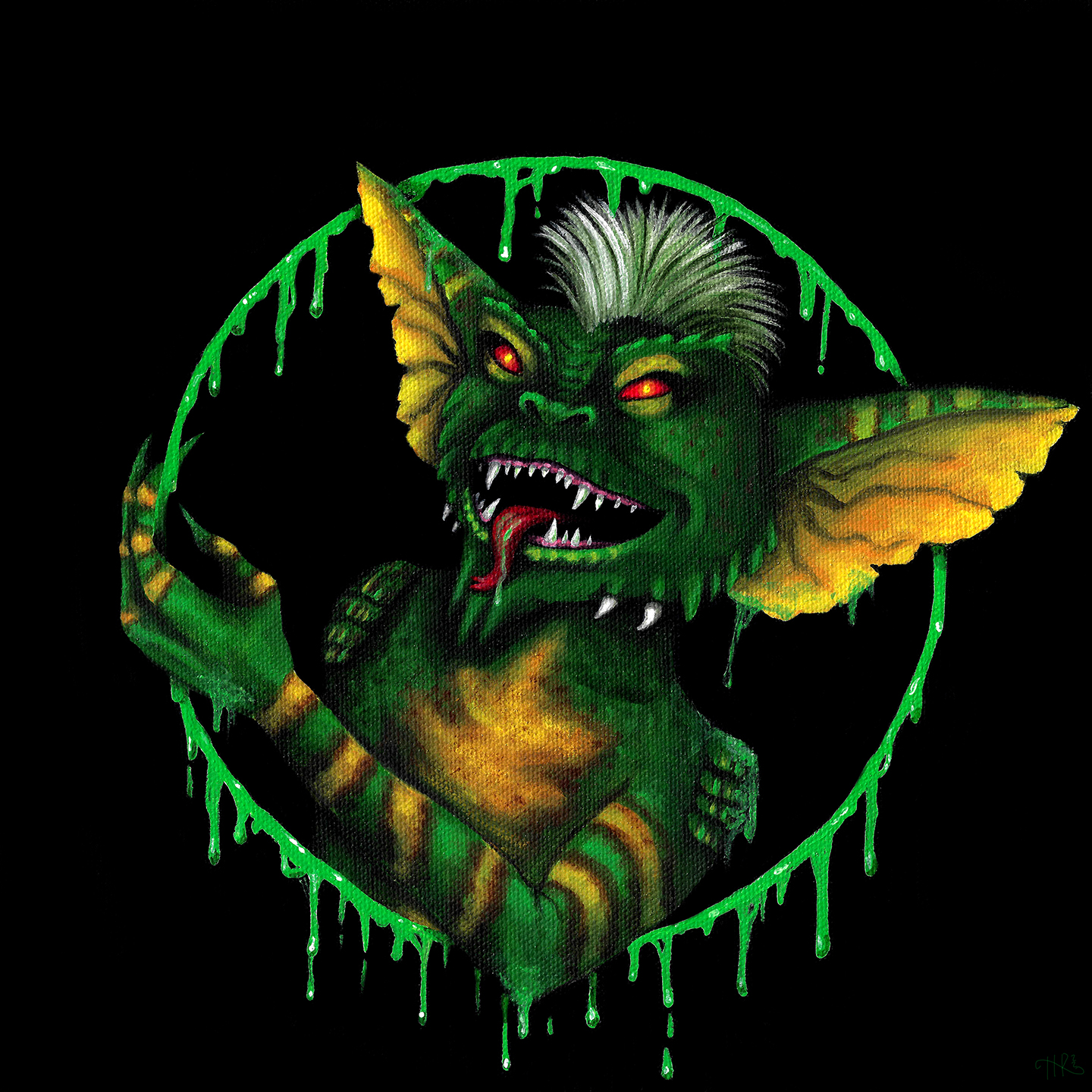 TITLE: Stripe Gremlin ARTIST: Heather Rose MEDIUM: Acrylics on canvas SIZE: 10x10” PRICE: 333.00 USD SHIPPING: U.S. Included / Intl. TBD