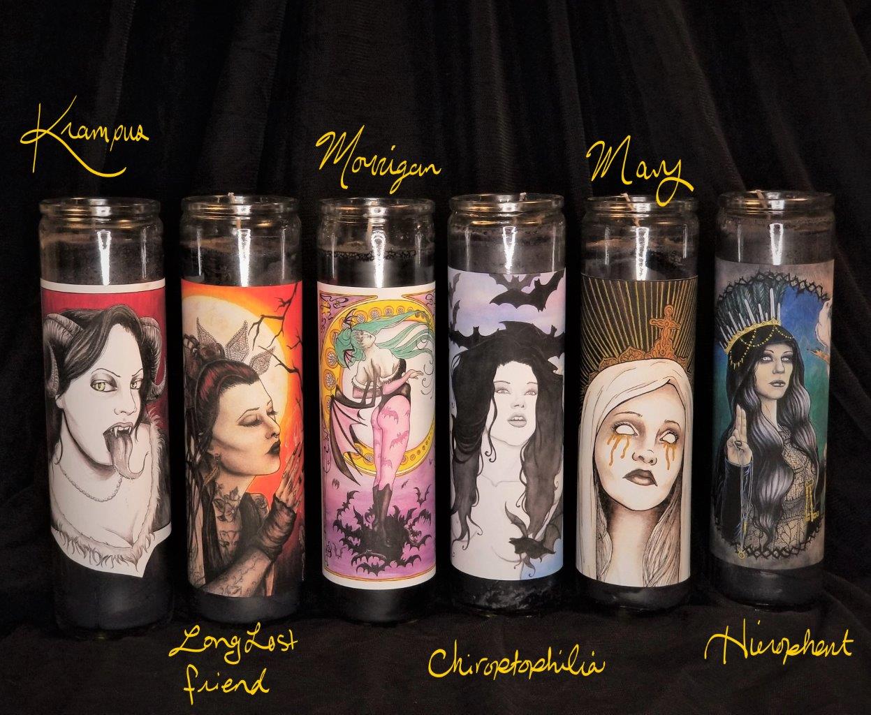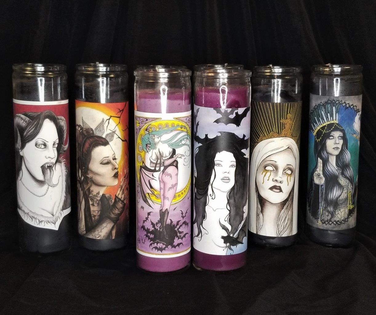 These are traditional "7 day" prayer candles, with a dark twist! Use in spellwork, or just for some ambiance. They are perfect for altars or dark home decor.