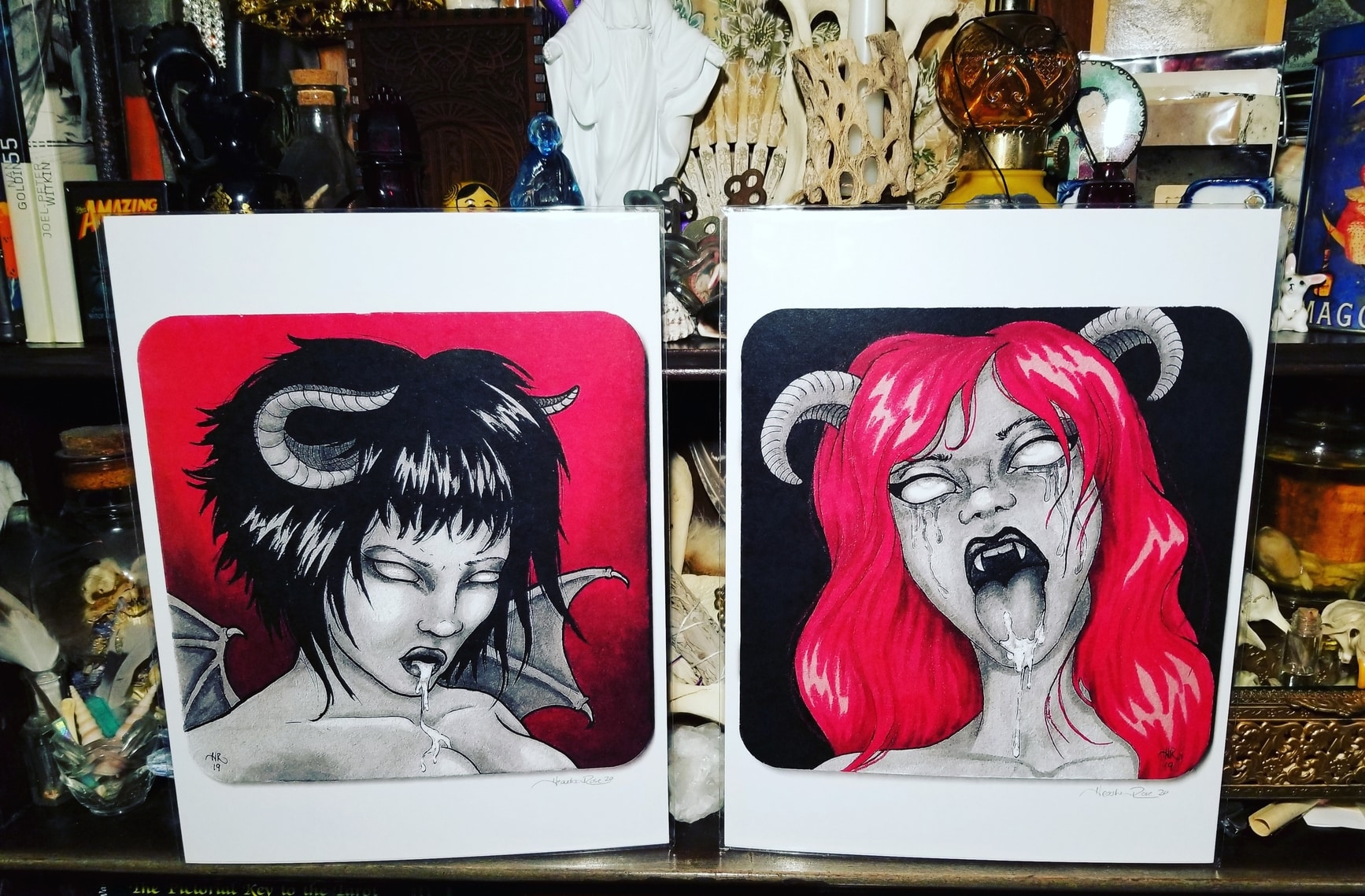 Print of a painting by Heather Rose, titled "Ahegao Oni"