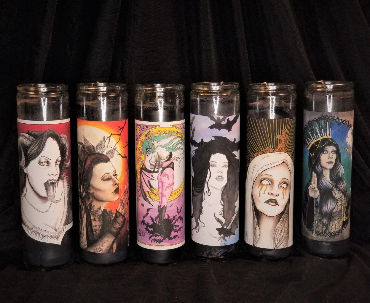 These are traditional "7 day" prayer candles, with a dark twist! Use in spellwork, or just for some ambiance. They are perfect for altars or dark home decor.