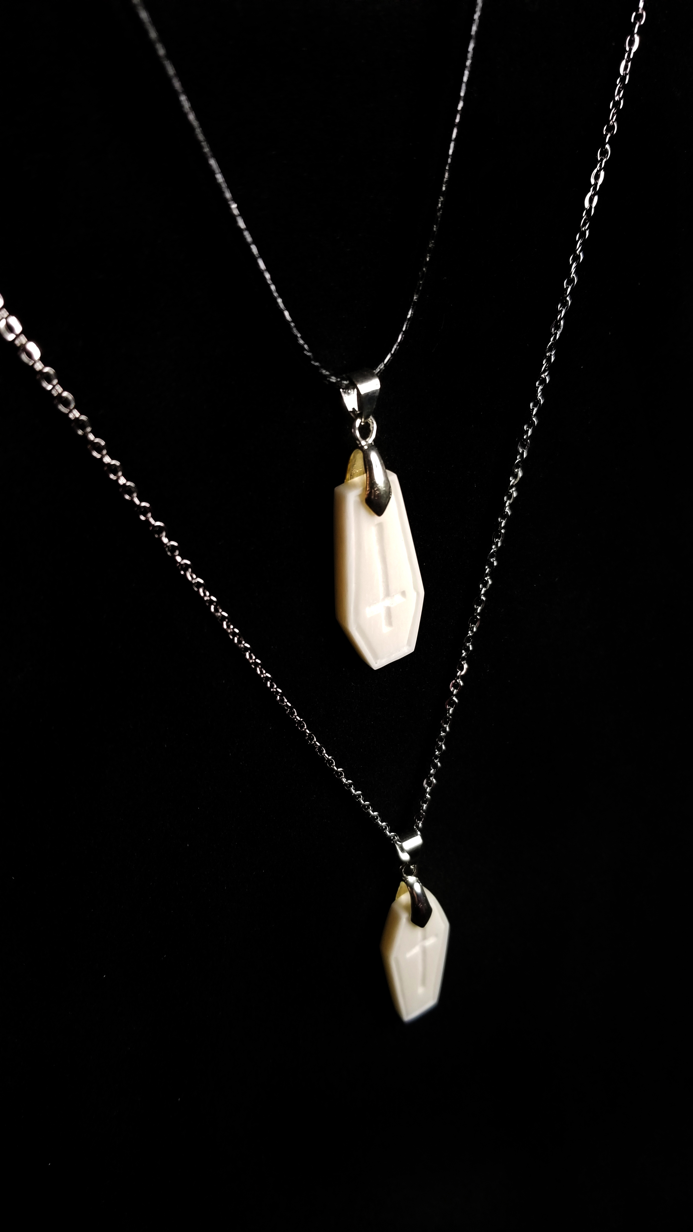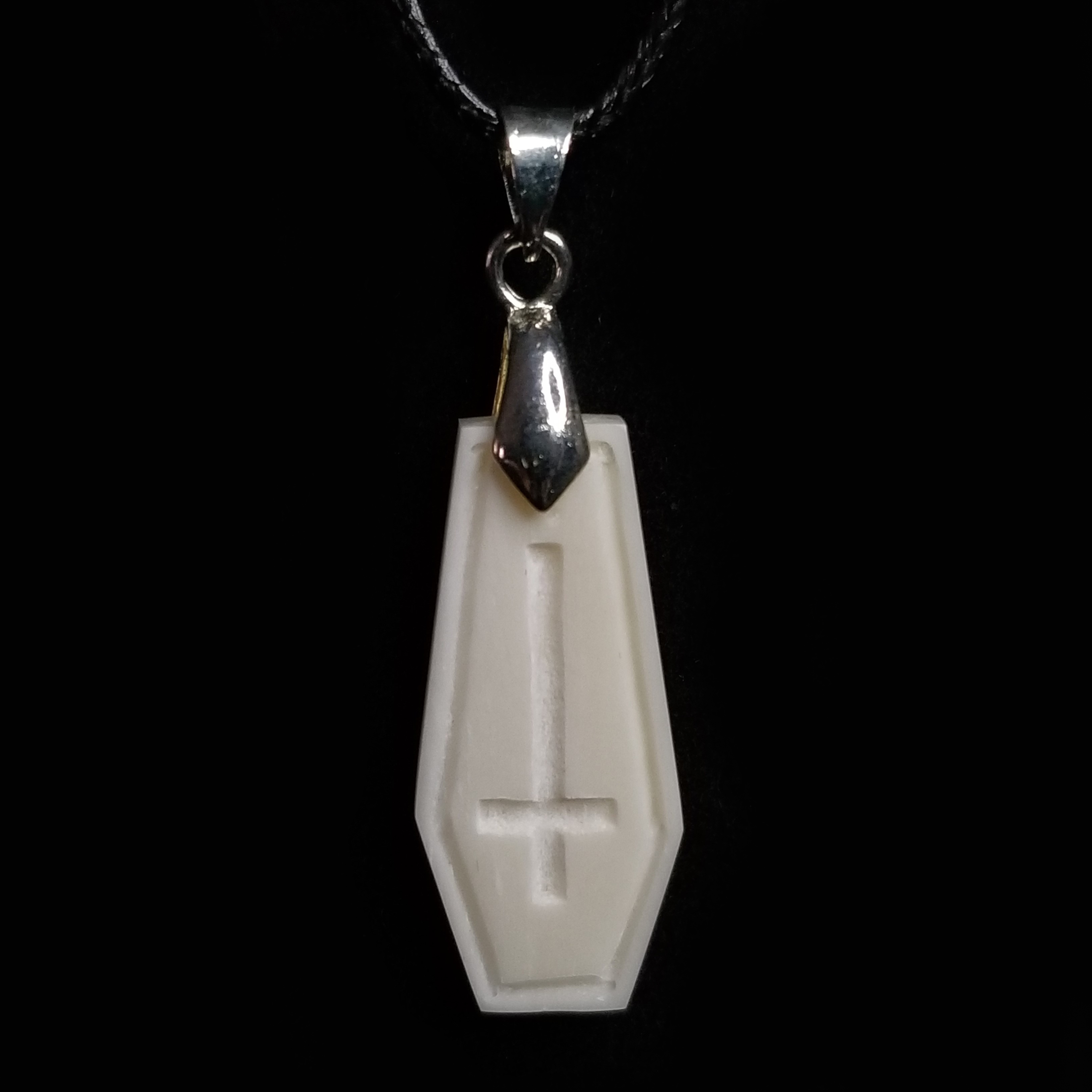 Hand-Carved Bone Coffin Necklace - Upside-Down