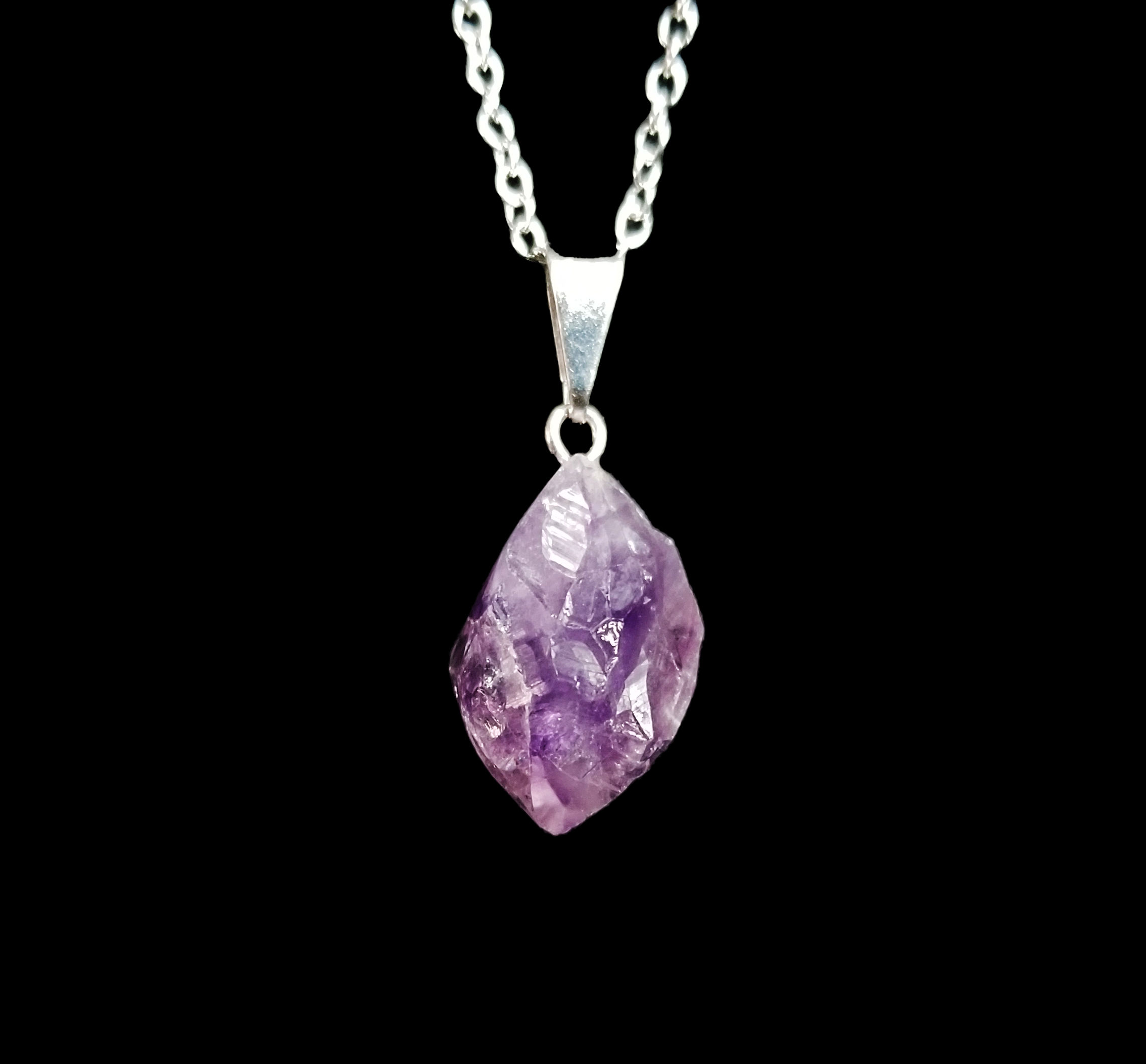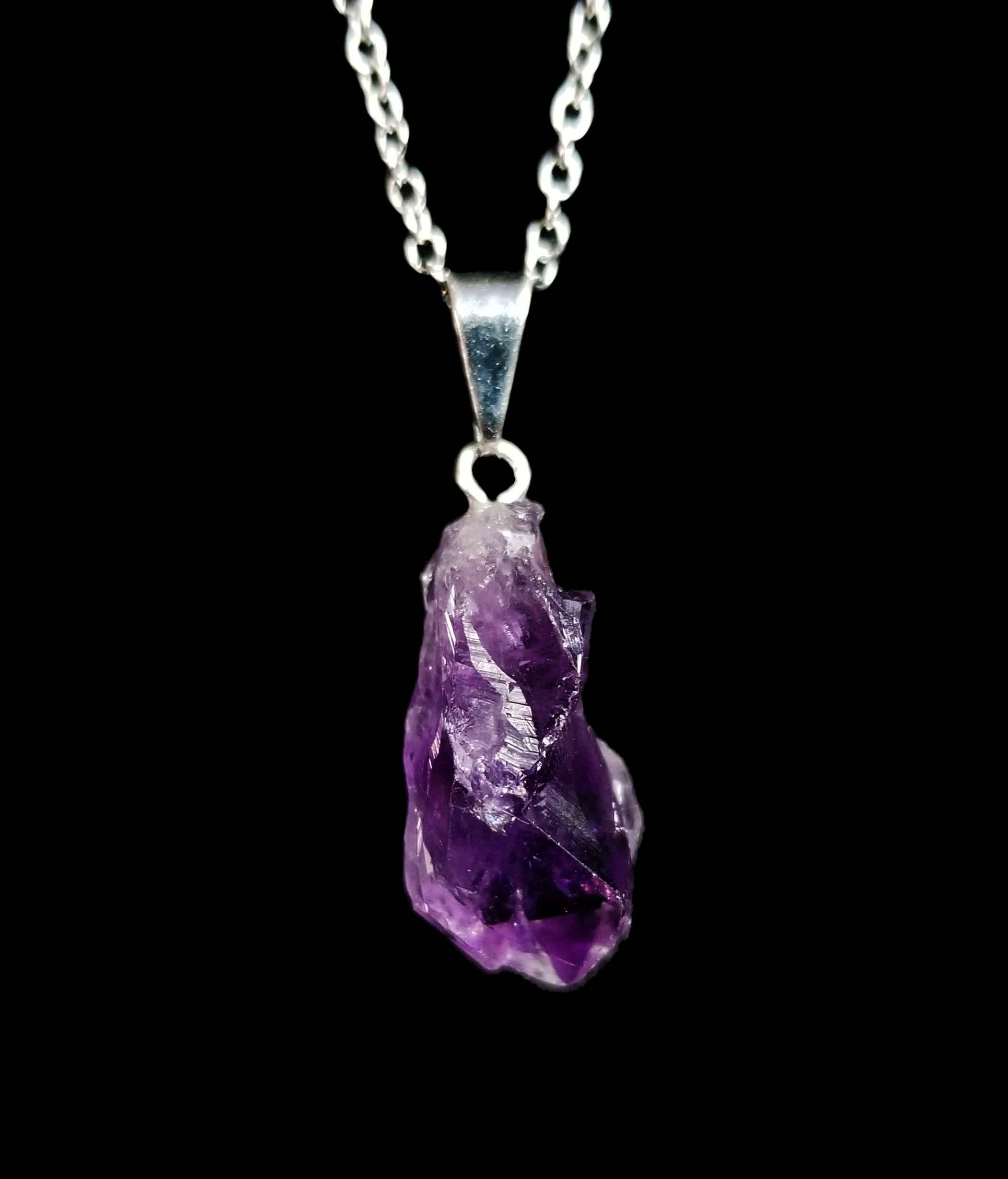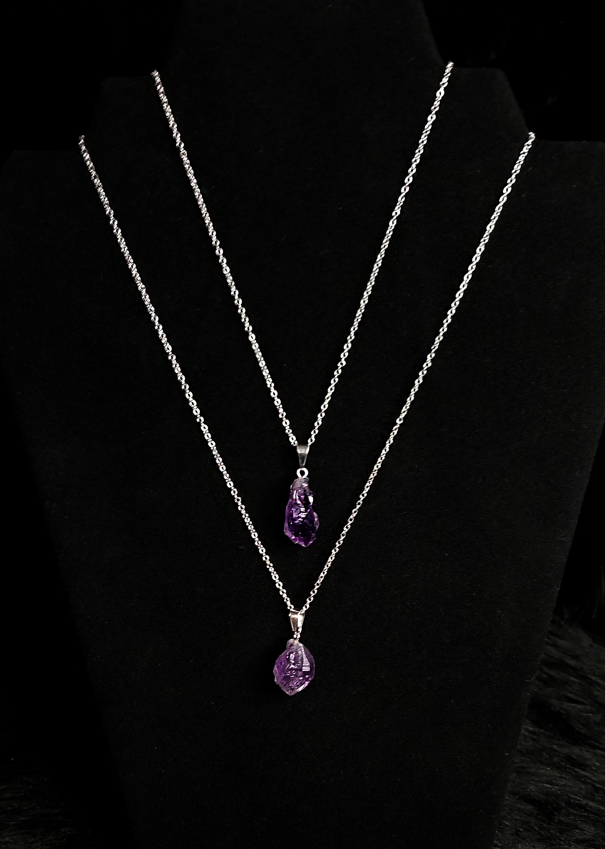 Rough Amethyst gemstone on a delicate silver-toned chain.
