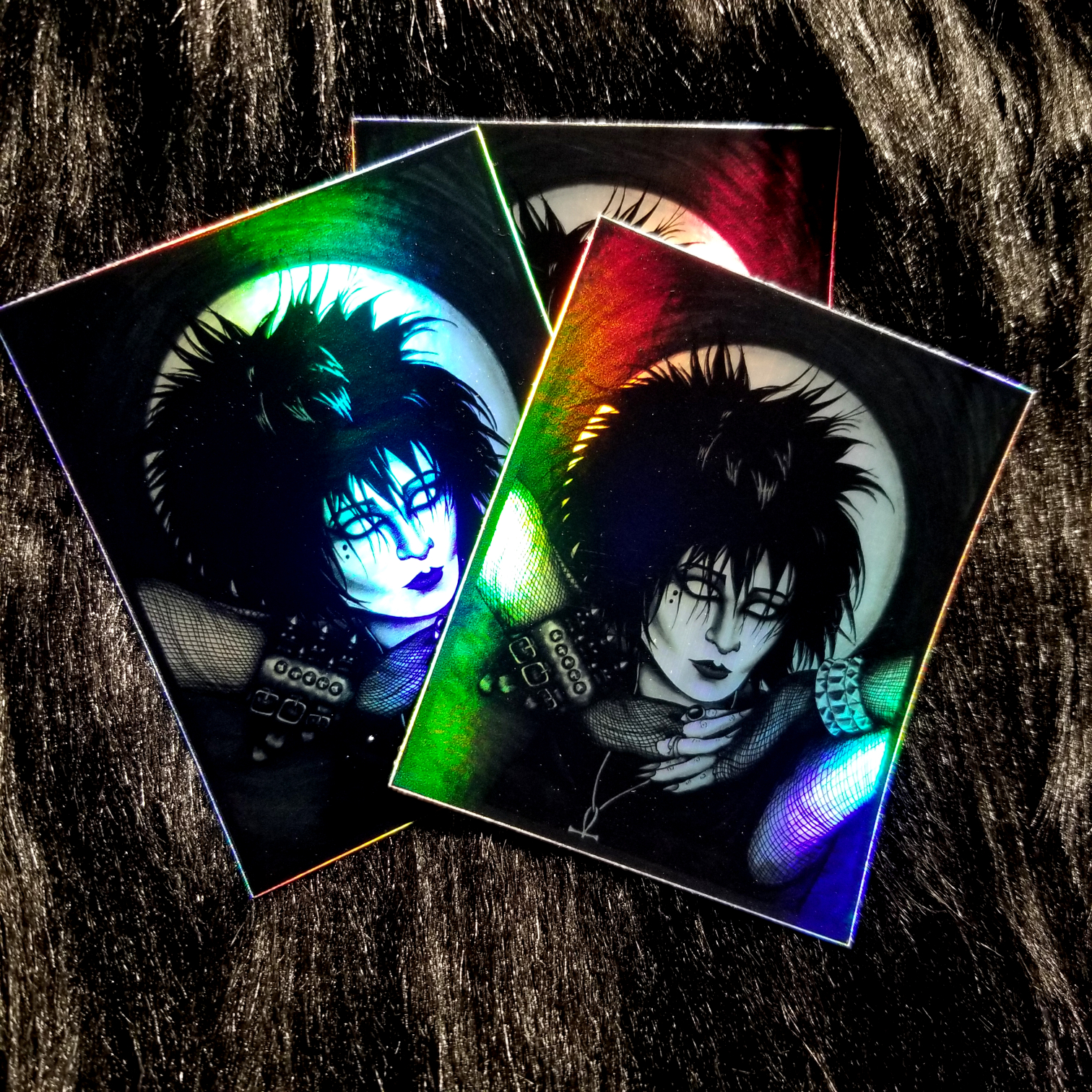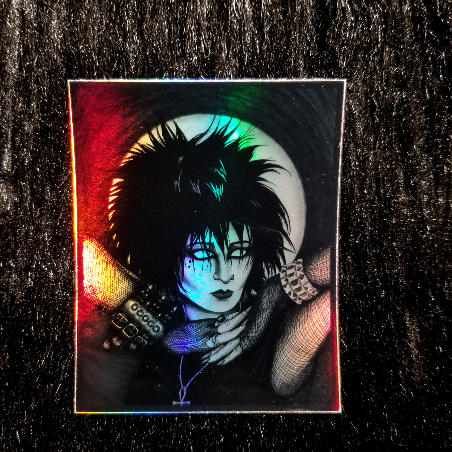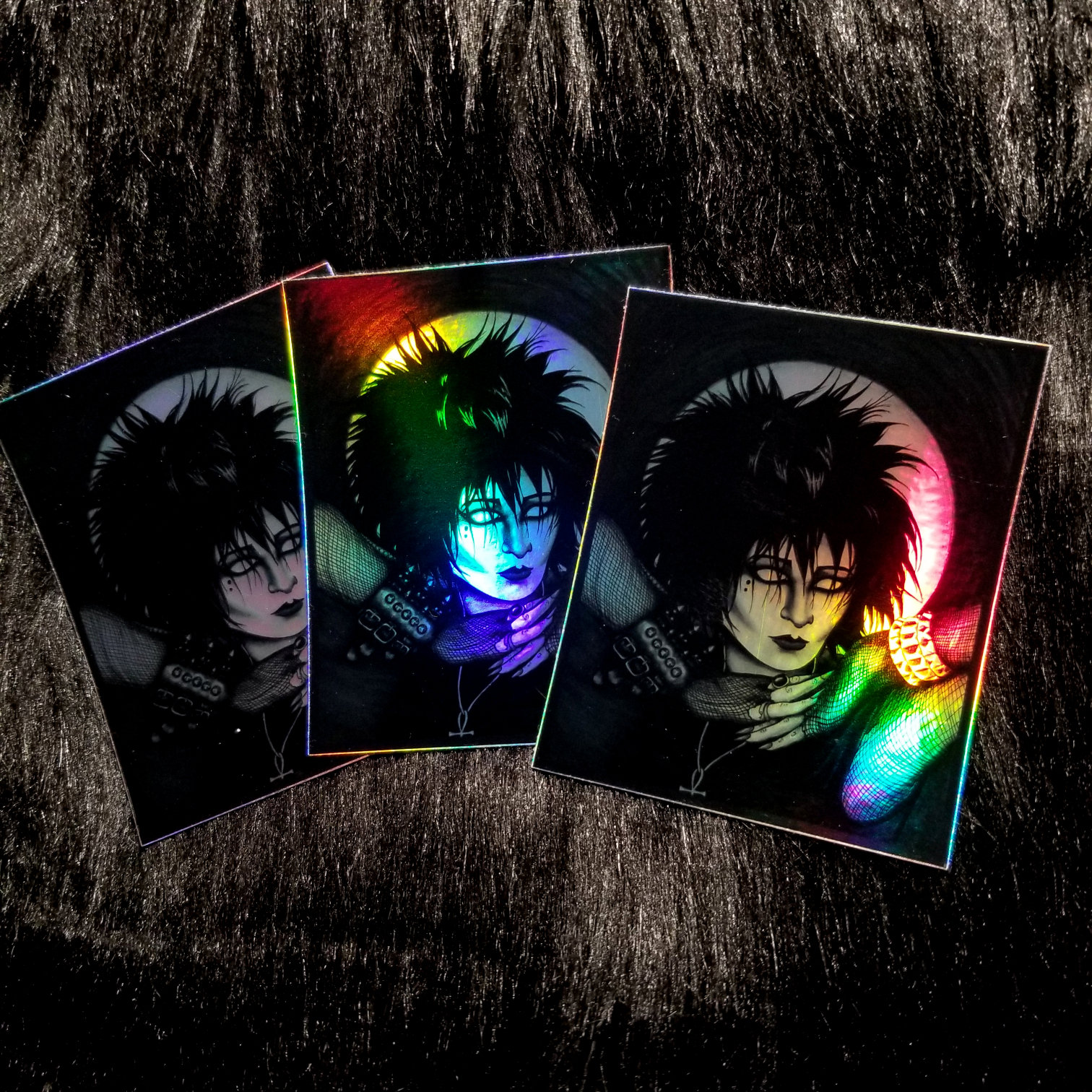 This sticker has an iridescent rainbow effect which changes colors as the light shifts.